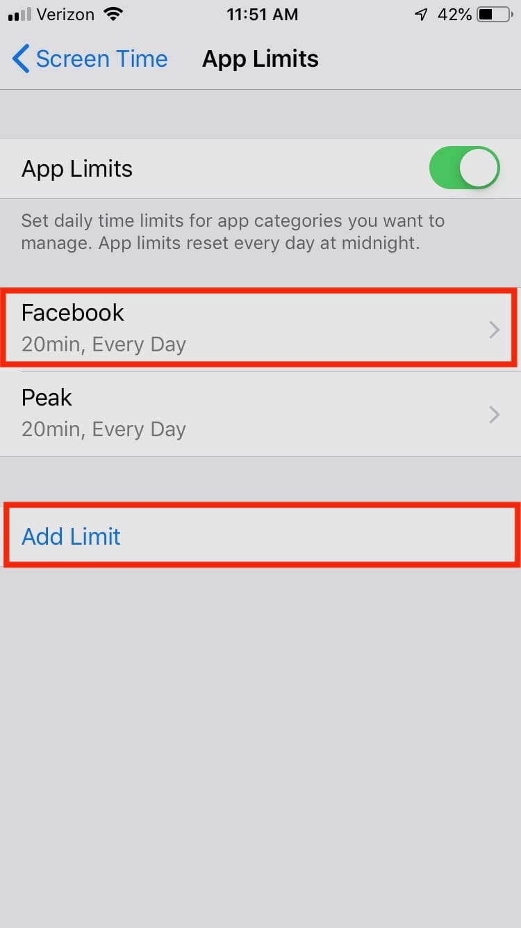 This let me choose one more option in the Screen Time limits for the Facebook app: