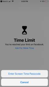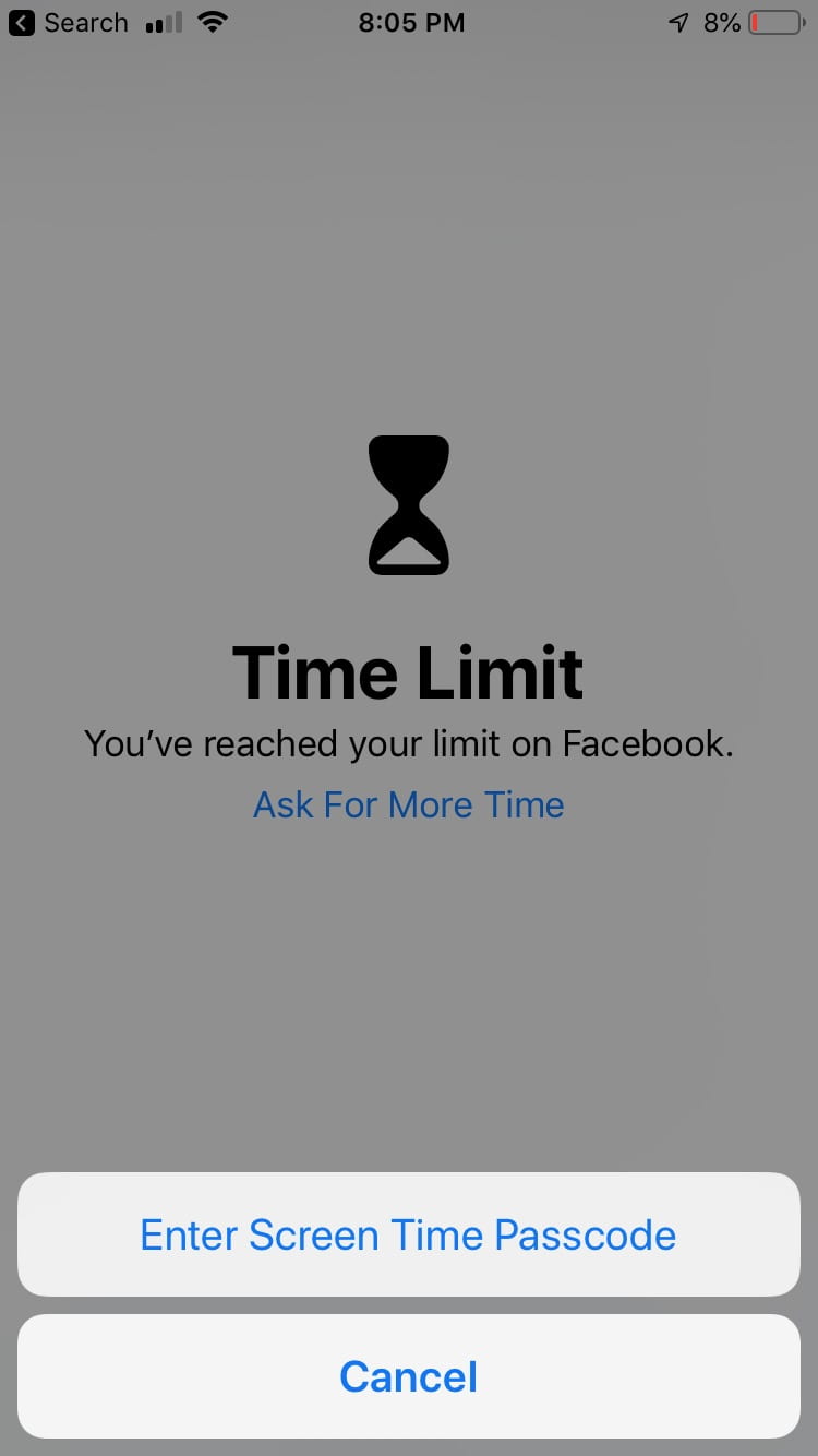 Now I have to enter my Screen Time passcode to get more time in the Facebook app.